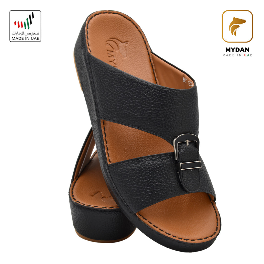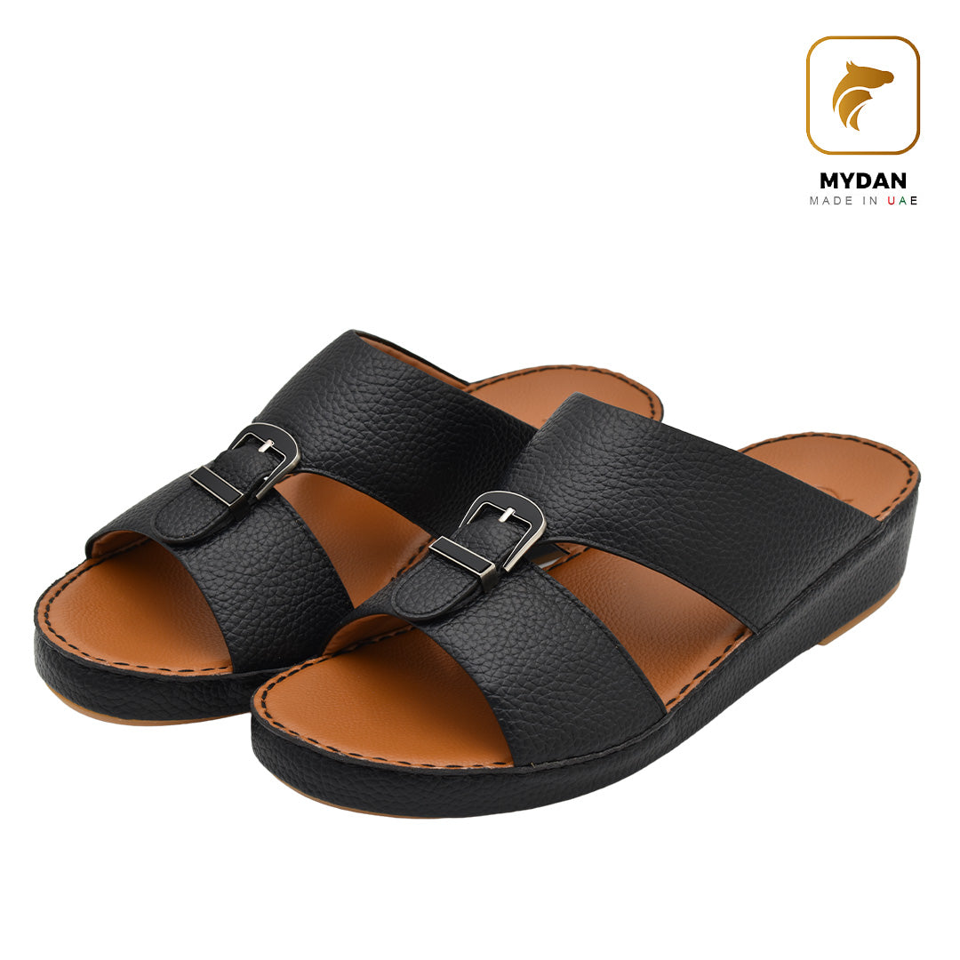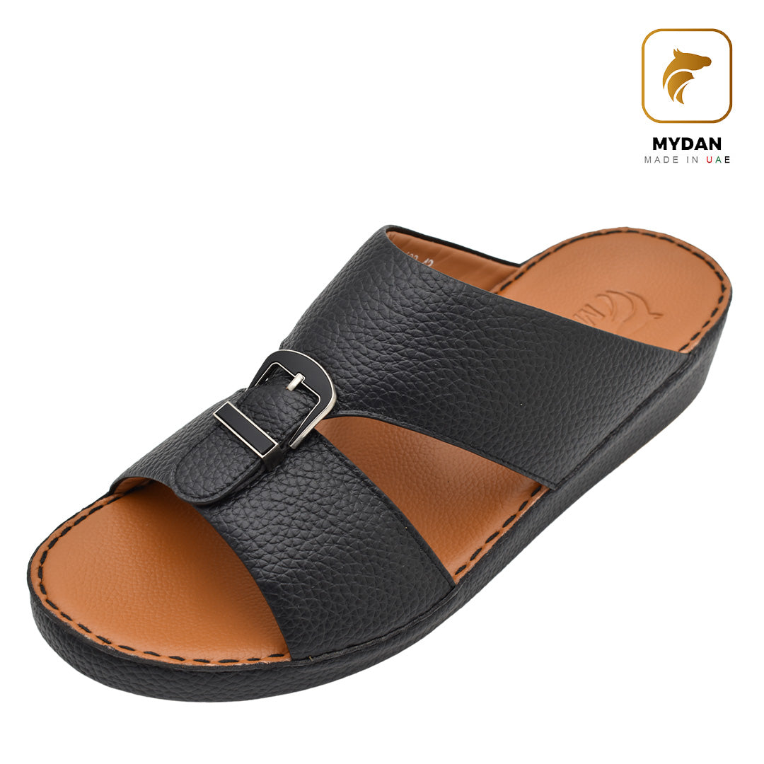 This pair of Arabic sandals, which have a solid tone and a basic design together with a hollow footbed, will quickly become your favorite. This pair, made of fine leather and featuring a slip-on design, is essential to your collection of footwear.