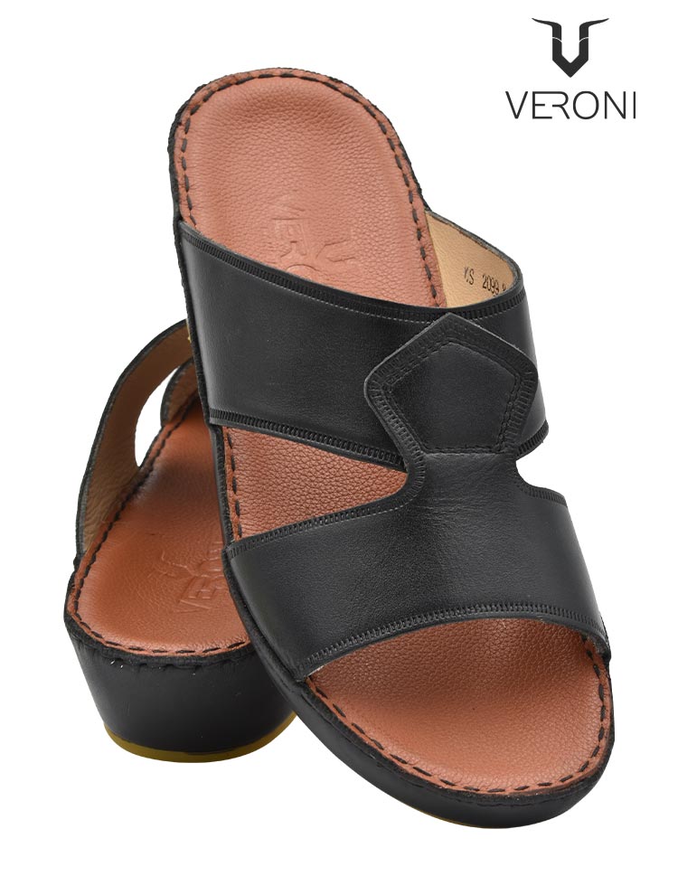 صندل وروني أسود [V139] من جلد كالف بالكامل