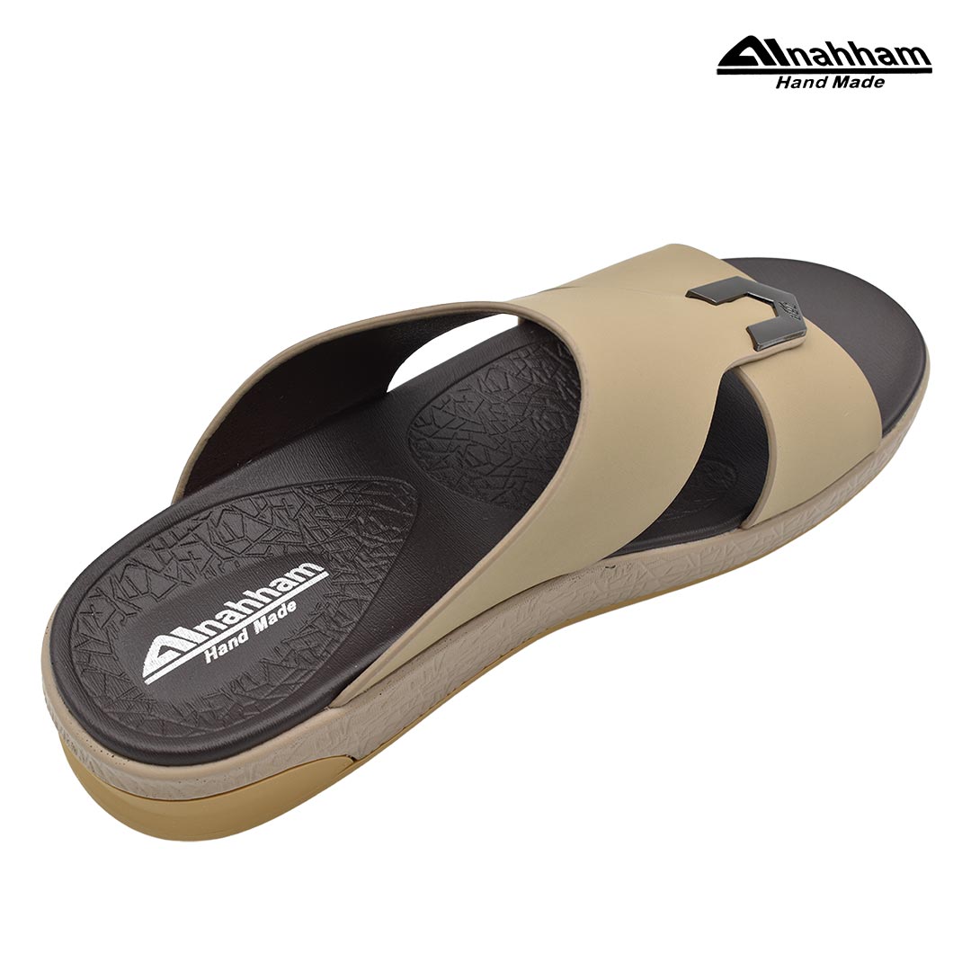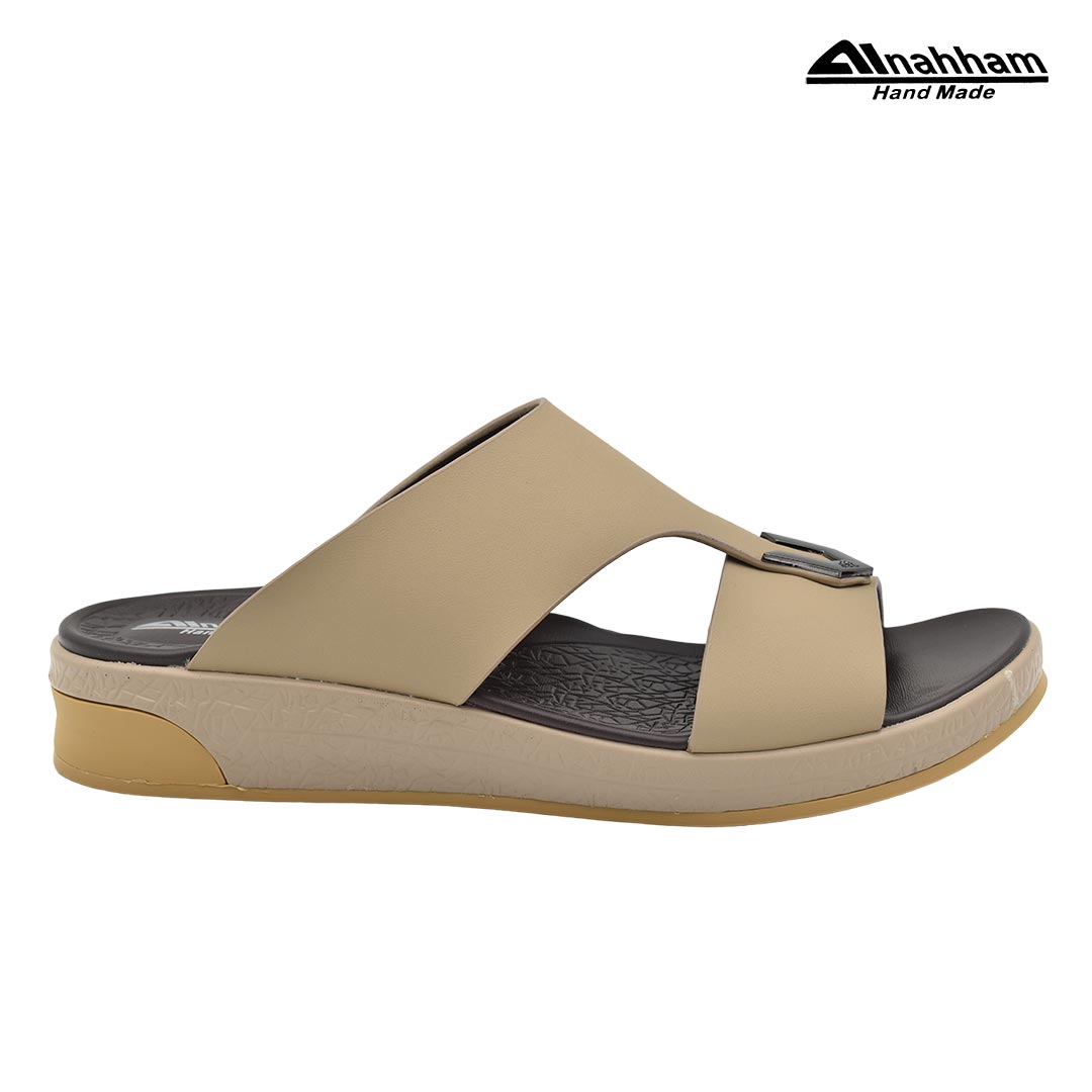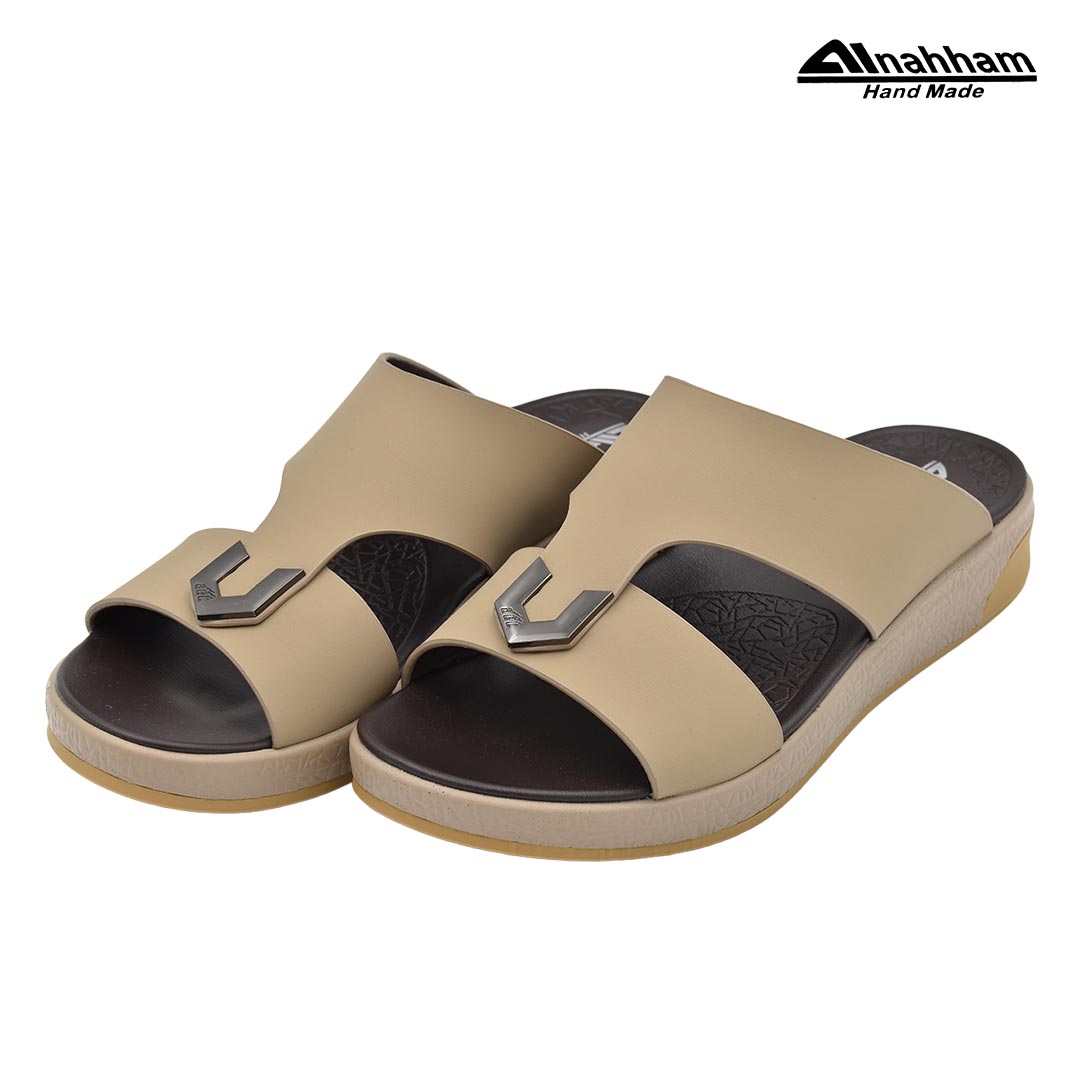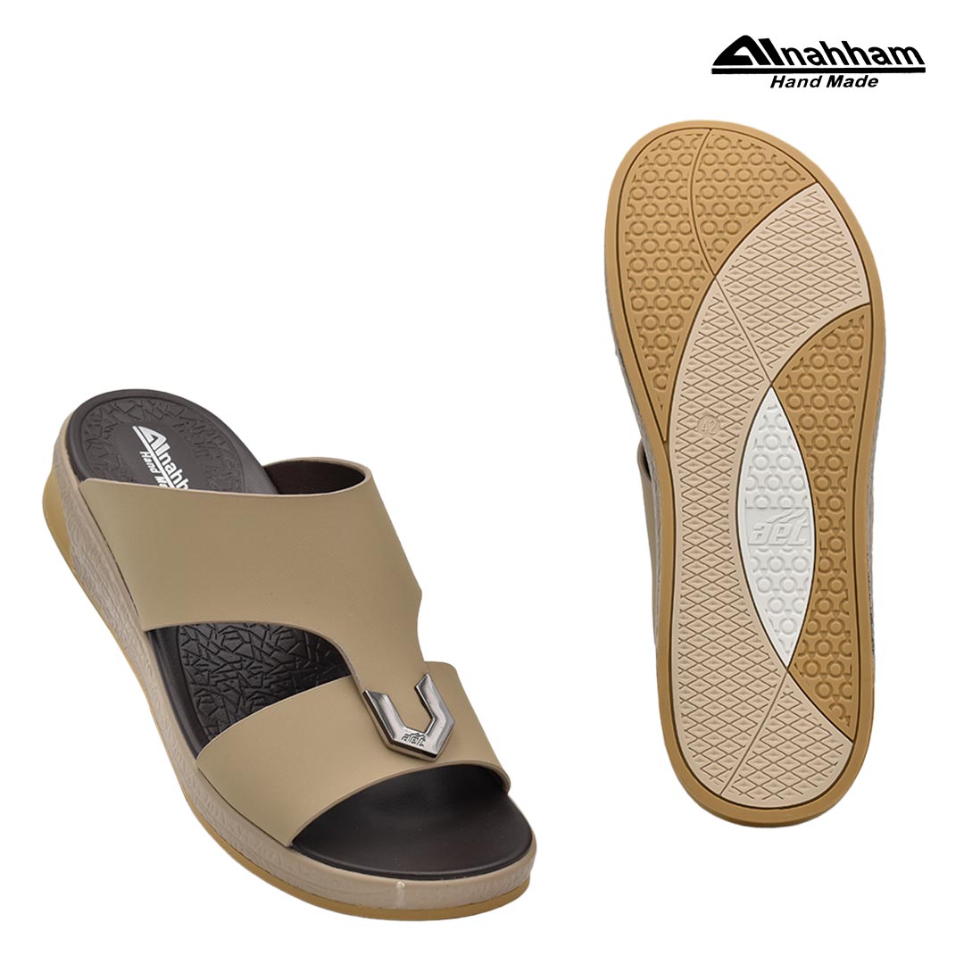 حافظ على راحة وسلامة قدميك من خلال صنادل الجلد المميزة من دار النحام. فهذا الصندل الغني بالنقوش مثالي لجميع المناسبات. صندل مصنوع من مواد عالية الجودة تتميز بخفة وزنها ومستوى أمانها العالي بفضل النعل ""المقاوم للانزلاق"". كما أن هذا الصندل الجلدي مصمم ليتحمل الاستعمال لفترة طويلة وتمت صناعته بواسطة متخصصين . فإذا كنت تريد أن تمشي بكل راحة وأناقة فلا تتردد في اقتناء هذا الصندل. هذا النعل مصنوع من الداخل من مواد عالية الجودة من البولي يوريثان الذي يتميز بالخفة والمتانة. تمت حياكته يدويًا باستخدام خيط مضفر قوي وتدوم الحياكة لفترة طويلة جدًا. تمنع بطانة النعل الداخلية المصنوعة من مواد عديمة الرائحة تراكم أي نوع من الروائح على سطحها مما يجعلها دائمًا نظيفة حتى بعد الاستخدام الطويل..