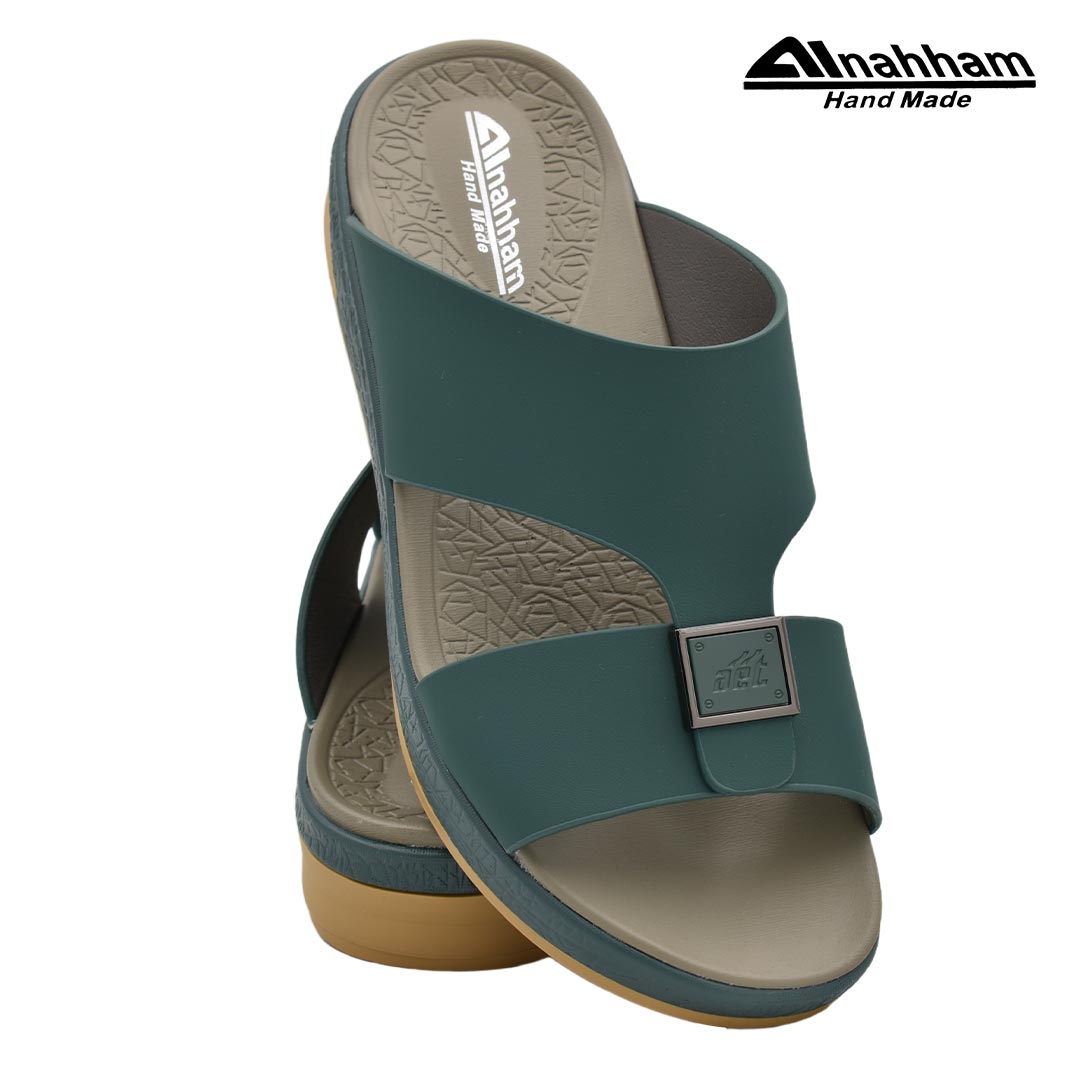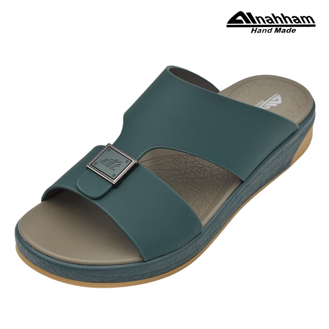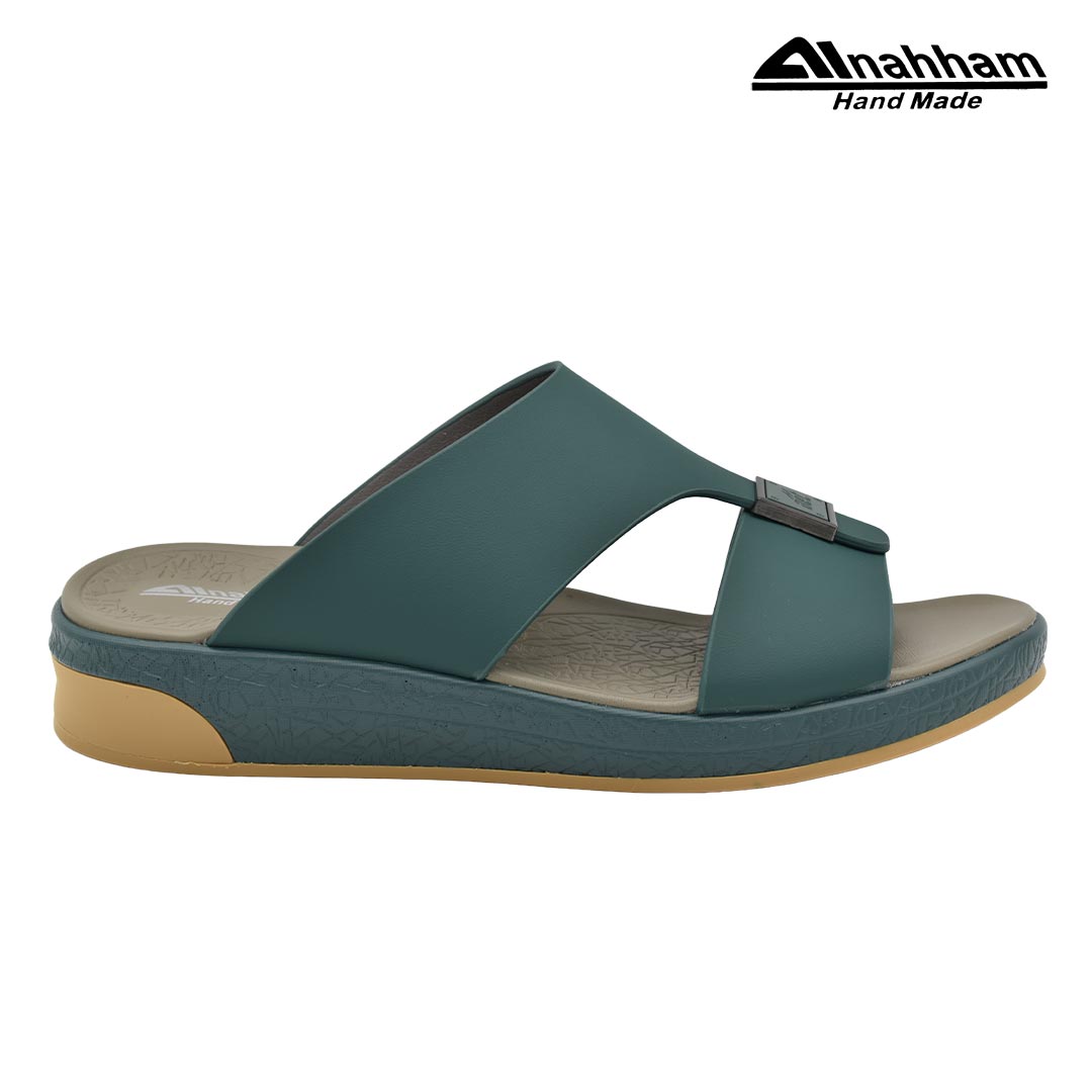 حافظ على راحة وسلامة قدميك من خلال صنادل الجلد المميزة من دار النحام. فهذا الصندل الغني بالنقوش مثالي لجميع المناسبات. صندل مصنوع من مواد عالية الجودة تتميز بخفة وزنها ومستوى أمانها العالي بفضل النعل ""المقاوم للانزلاق"". كما أن هذا الصندل الجلدي مصمم ليتحمل الاستعمال لفترة طويلة وتمت صناعته بواسطة متخصصين . فإذا كنت تريد أن تمشي بكل راحة وأناقة فلا تتردد في اقتناء هذا الصندل. هذا النعل مصنوع من الداخل من مواد عالية الجودة من البولي يوريثان الذي يتميز بالخفة والمتانة. تمت حياكته يدويًا باستخدام خيط مضفر قوي وتدوم الحياكة لفترة طويلة جدًا. تمنع بطانة النعل الداخلية المصنوعة من مواد عديمة الرائحة تراكم أي نوع من الروائح على سطحها مما يجعلها دائمًا نظيفة حتى بعد الاستخدام الطويل..