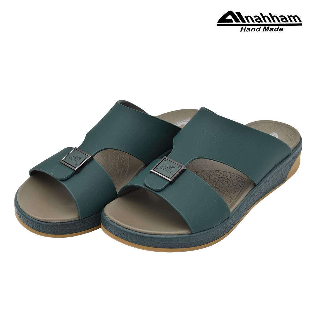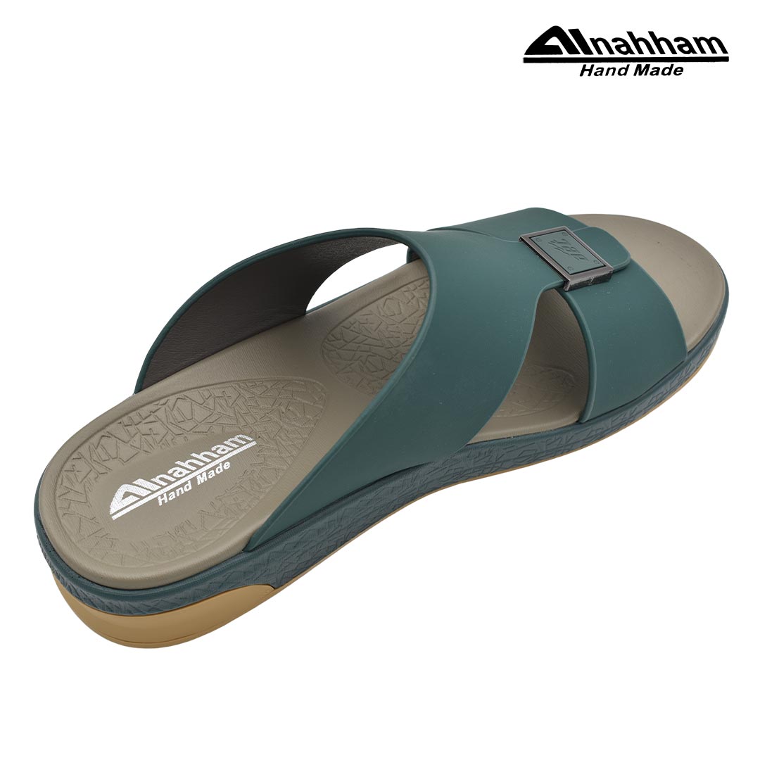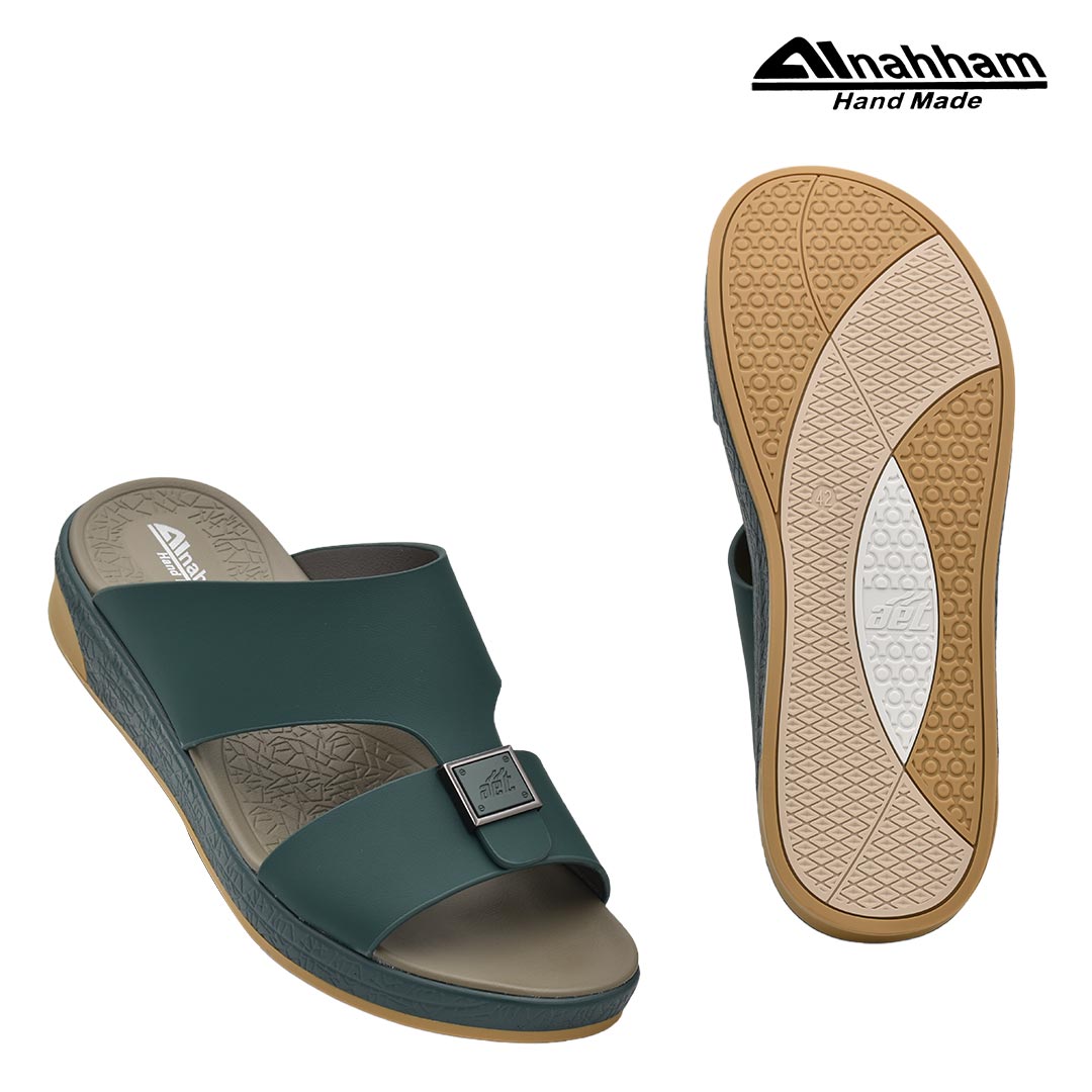 حافظ على راحة وسلامة قدميك من خلال صنادل الجلد المميزة من دار النحام. فهذا الصندل الغني بالنقوش مثالي لجميع المناسبات. صندل مصنوع من مواد عالية الجودة تتميز بخفة وزنها ومستوى أمانها العالي بفضل النعل ""المقاوم للانزلاق"". كما أن هذا الصندل الجلدي مصمم ليتحمل الاستعمال لفترة طويلة وتمت صناعته بواسطة متخصصين . فإذا كنت تريد أن تمشي بكل راحة وأناقة فلا تتردد في اقتناء هذا الصندل. هذا النعل مصنوع من الداخل من مواد عالية الجودة من البولي يوريثان الذي يتميز بالخفة والمتانة. تمت حياكته يدويًا باستخدام خيط مضفر قوي وتدوم الحياكة لفترة طويلة جدًا. تمنع بطانة النعل الداخلية المصنوعة من مواد عديمة الرائحة تراكم أي نوع من الروائح على سطحها مما يجعلها دائمًا نظيفة حتى بعد الاستخدام الطويل..