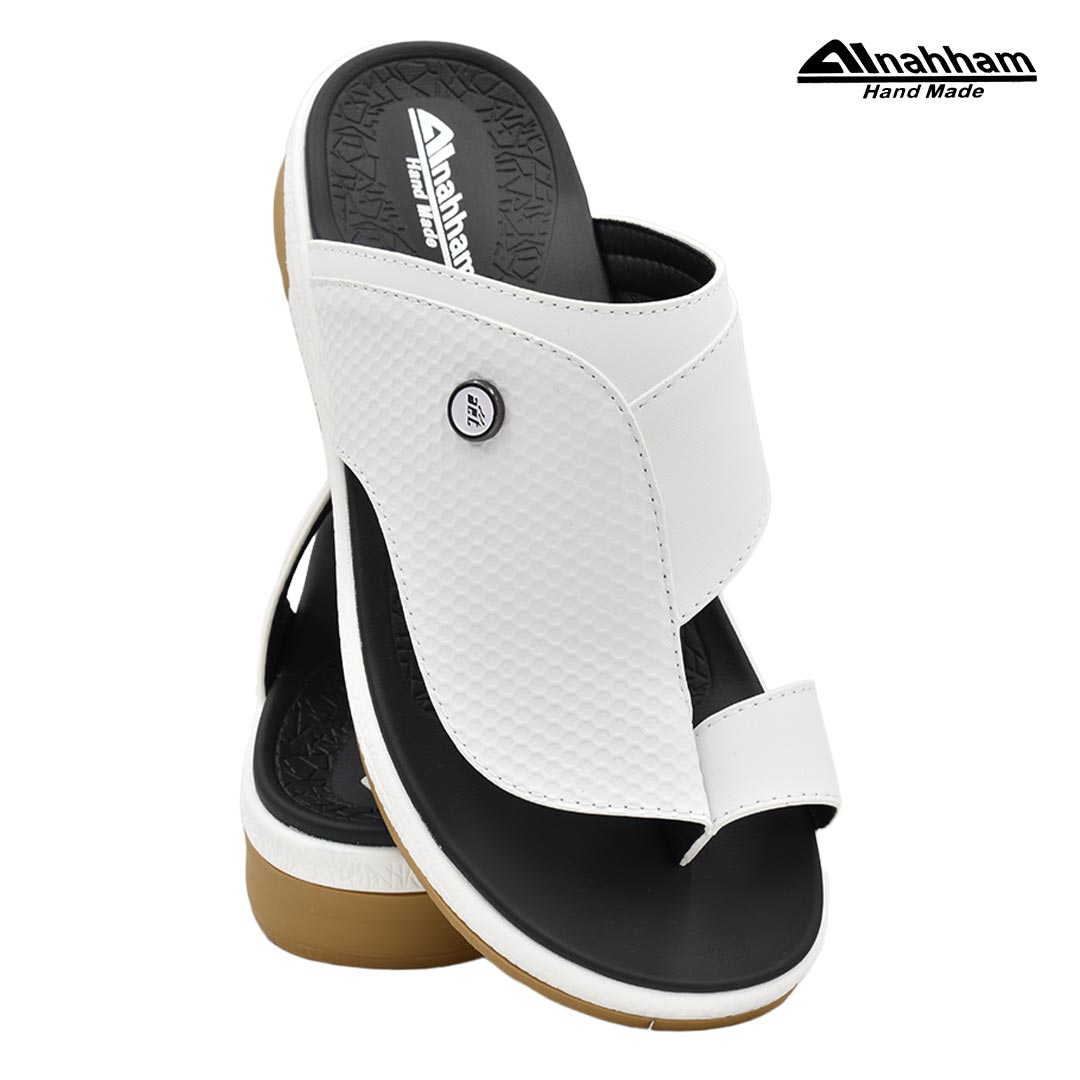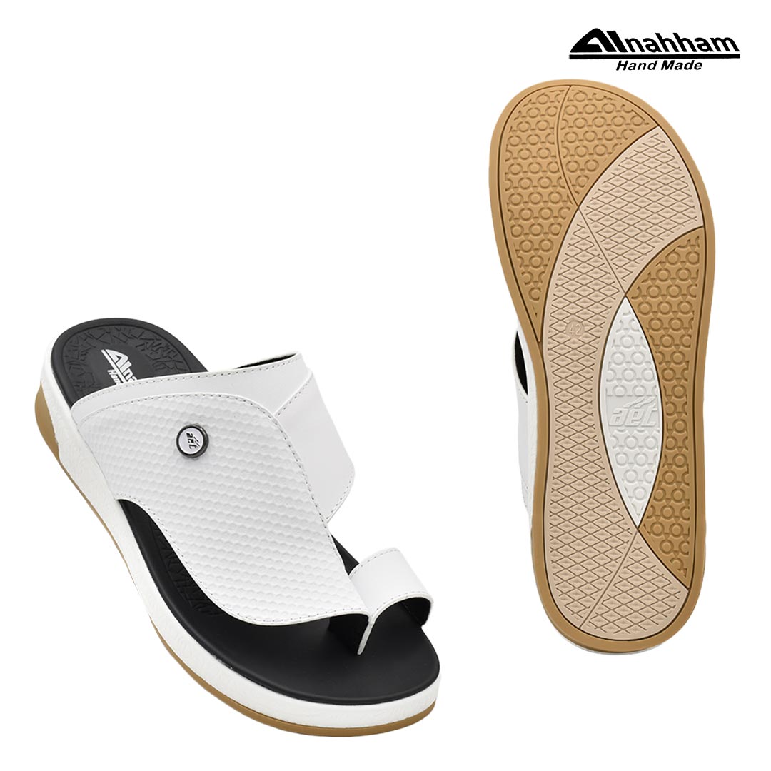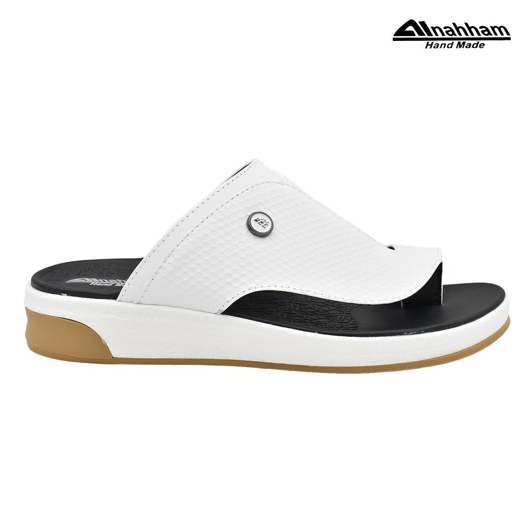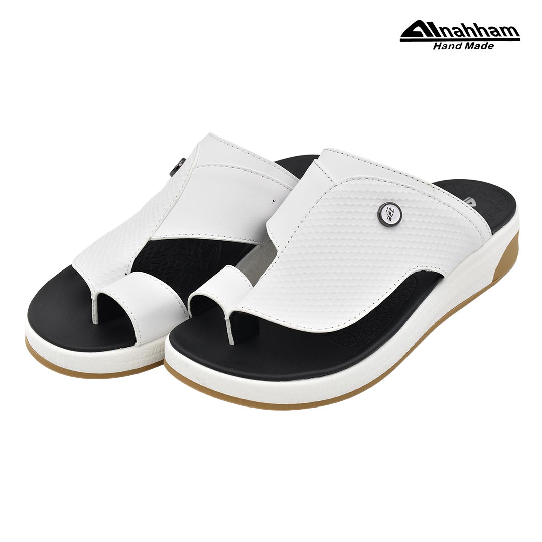 حافظ على راحة وسلامة قدميك من خلال صنادل الجلد المميزة من دار النحام. فهذا الصندل الغني بالنقوش مثالي لجميع المناسبات. صندل مصنوع من مواد عالية الجودة تتميز بخفة وزنها ومستوى أمانها العالي بفضل النعل ""المقاوم للانزلاق"". كما أن هذا الصندل الجلدي مصمم ليتحمل الاستعمال لفترة طويلة وتمت صناعته بواسطة متخصصين . فإذا كنت تريد أن تمشي بكل راحة وأناقة فلا تتردد في اقتناء هذا الصندل. هذا النعل مصنوع من الداخل من مواد عالية الجودة من البولي يوريثان الذي يتميز بالخفة والمتانة. تمت حياكته يدويًا باستخدام خيط مضفر قوي وتدوم الحياكة لفترة طويلة جدًا. تمنع بطانة النعل الداخلية المصنوعة من مواد عديمة الرائحة تراكم أي نوع من الروائح على سطحها مما يجعلها دائمًا نظيفة حتى بعد الاستخدام الطويل..