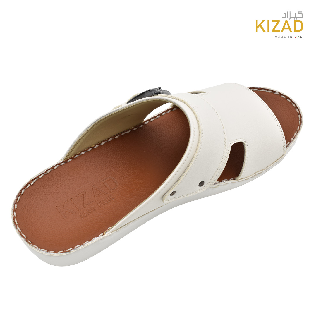 حافظ على راحة وسلامة قدميك من خلال صنادل الجلد المميزة من دار كيزاد في الإمارات العربية المتحدة. فهذا الصندل الغني بالنقوش مثالي لجميع المناسبات. صندل مصنوع من مواد عالية الجودة تتميز بخفة وزنها ومستوى أمانها العالي بفضل النعل "المقاوم للانزلاق". كما أن هذا الصندل الجلدي مصمم ليتحمل الاستعمال لفترة طويلة وتمت صناعته بواسطة متخصصين محترفين في الإمارات. فإذا كنت تريد أن تمشي بكل راحة وأناقة فلا تتردد في اقتناء هذا الصندل. هذا النعل مصنوع من الداخل من مواد عالية الجودة من البولي يوريثان الذي يتميز بالخفة والمتانة. تمت حياكته يدويًا باستخدام خيط مضفر قوي وتدوم الحياكة لفترة طويلة جدًا. تمنع بطانة النعل الداخلية المصنوعة من مواد عديمة الرائحة تراكم أي نوع من الروائح على سطحها مما يجعلها دائمًا نظيفة حتى بعد الاستخدام الطويل.