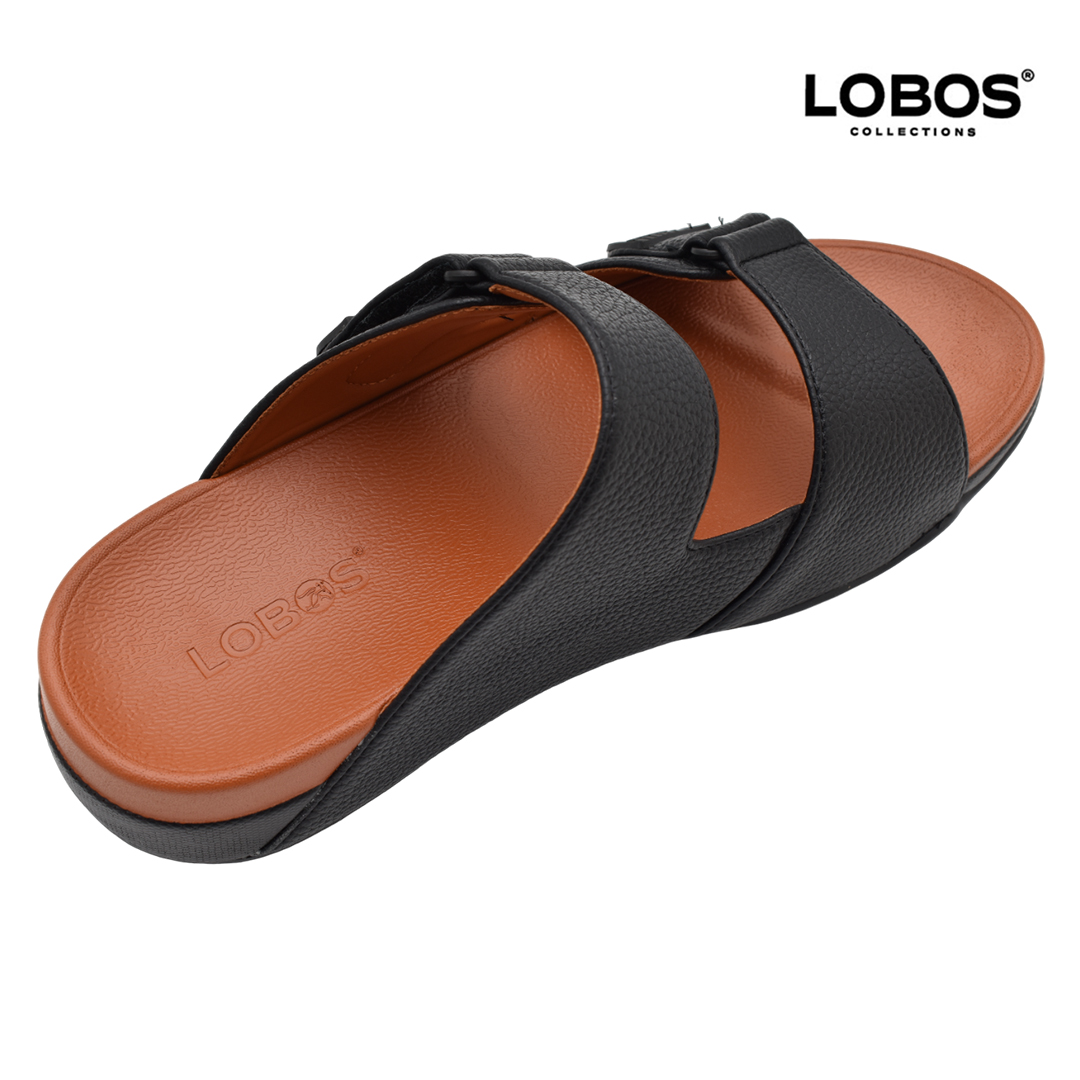 نعال لوبوس مصنوع من خامات عالية الجودة تحافظ على قوتها مما يعني أن الصندل سيدوم لفترة طويلة. يتبع الصندل الأسلوب الذي يحقق توازن بين النمط الكلاسيكي والعصري، مما يجعله دائم الأناقة بين الصنادل العربية.
