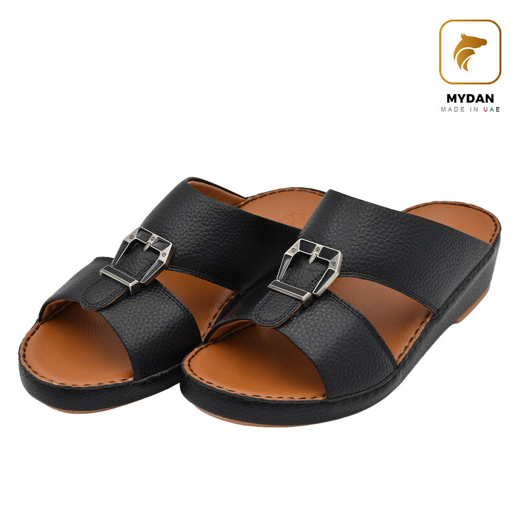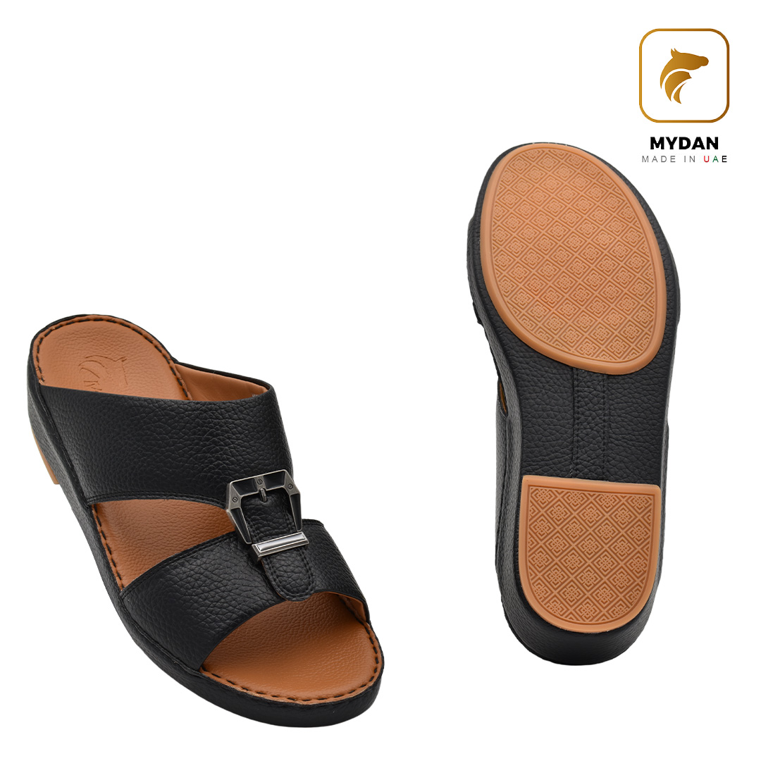 اختيار عملي وأنيق لمختلف الطلعات والمناسبات الكاجوال، صندل عربي راقي، مصنوع من الجلد الفاخر بنعل مطاطي لتمشي واثق الخطى، كما أنه يأتي بلون سادة لتنسيقه مع تشكيلة متنوعة من الملابس.