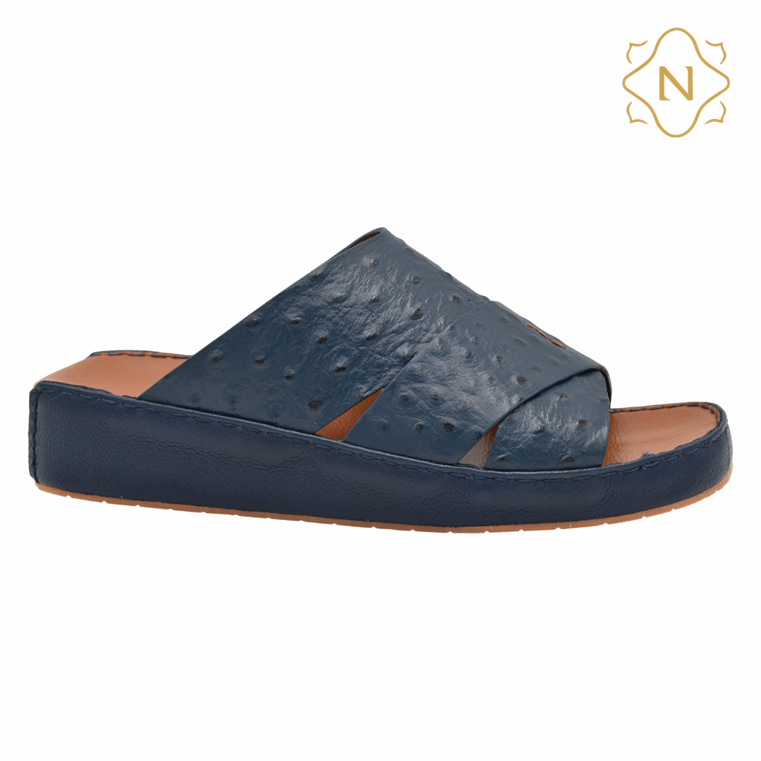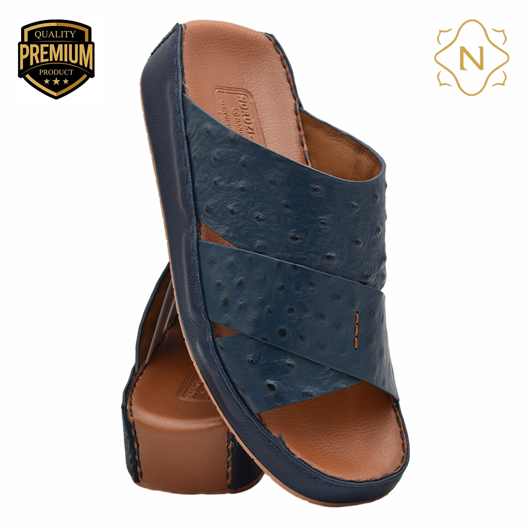 نوروزي جلد نعام أصلي L-153 [OS14] أزرق نعال رجالي