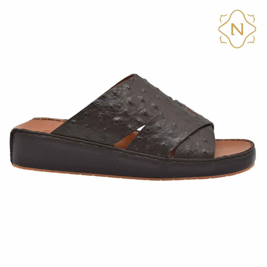 نوروزي جلد نعام أصلي L-153 [OS15] بني نعال رجالي