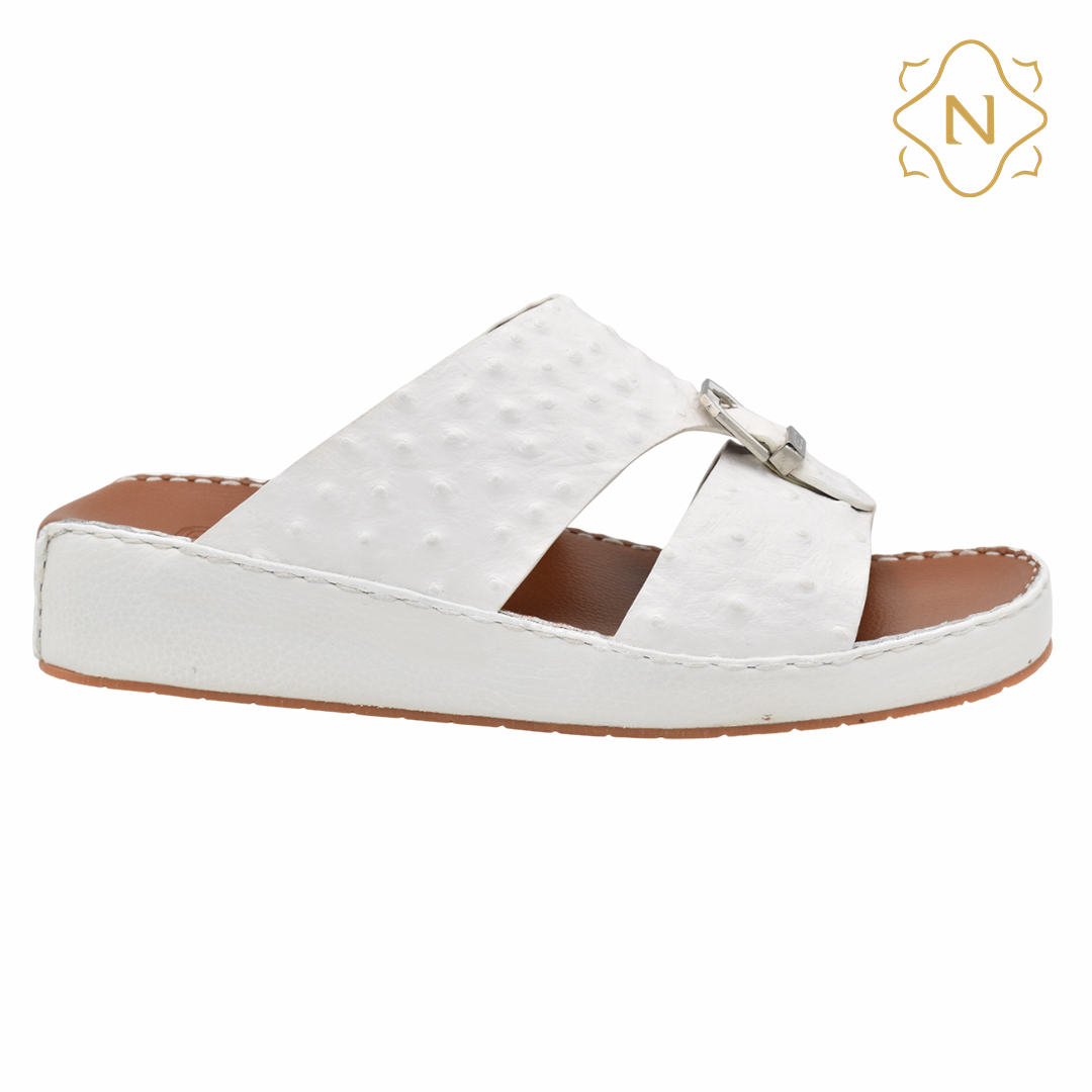 نوروزي جلد نعام أصلي L-154 [OS16] أبيض نعال رجالي