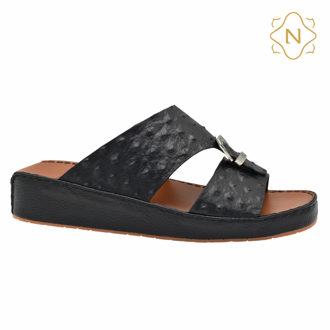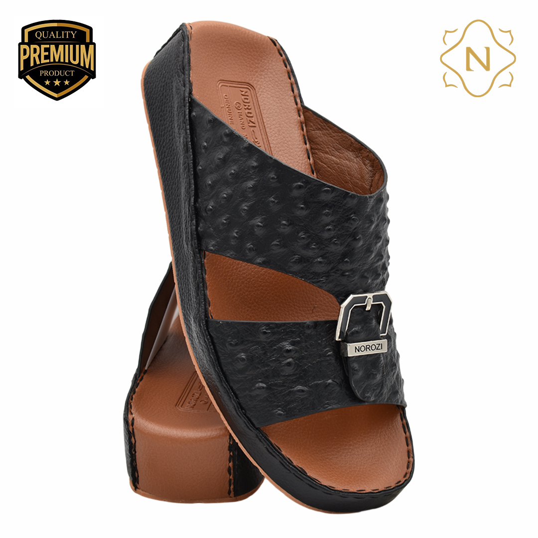 نوروزي جلد نعام أصلي L-154 [OS17] اسود نعال رجالي