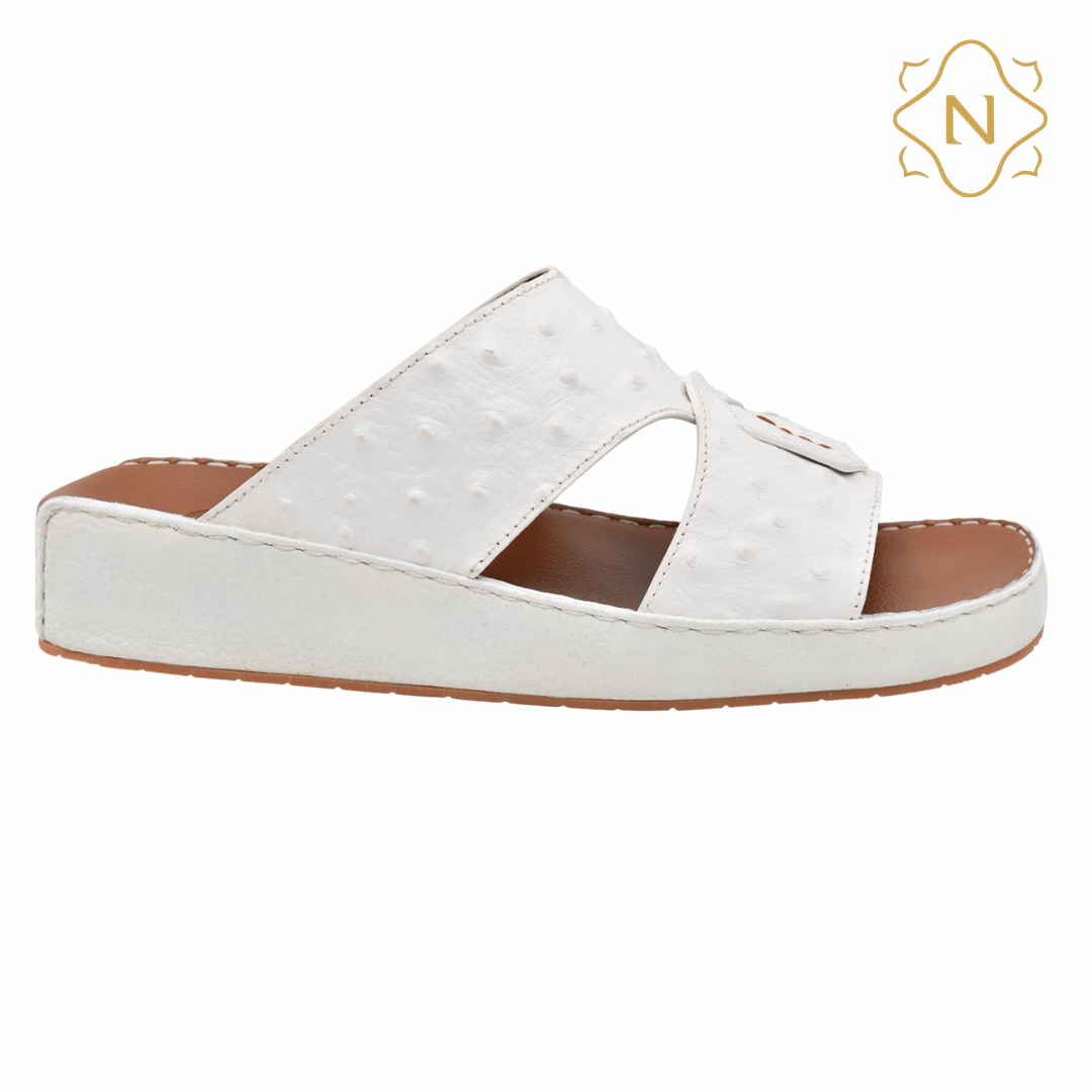 نوروزي جلد نعام أصلي L-155 [OS20] أبيض نعال رجالي