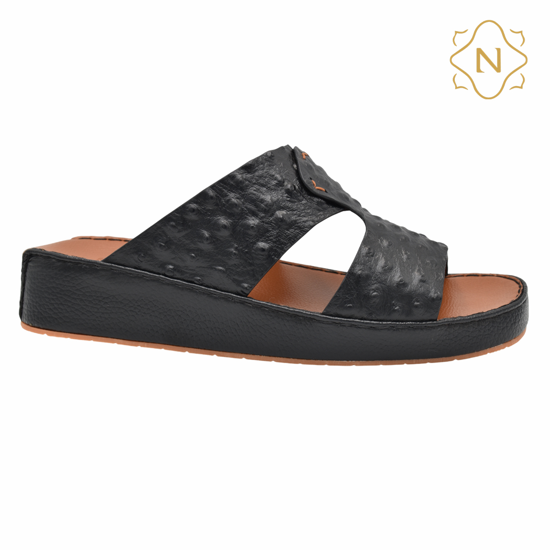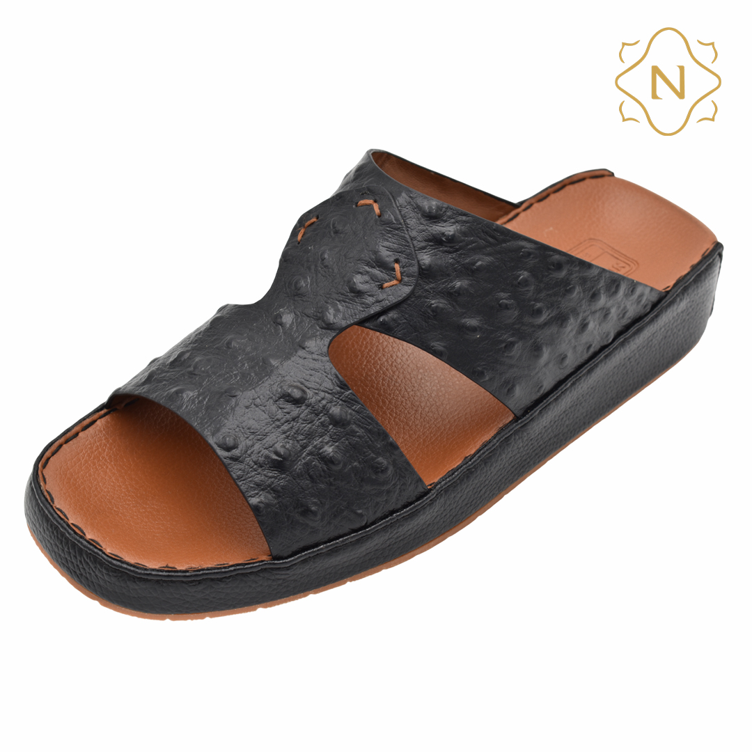 نوروزي جلد نعام أصلي L-156 [OS25] اسود نعال رجالي