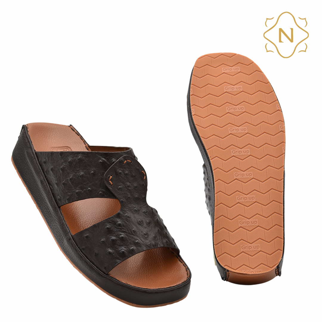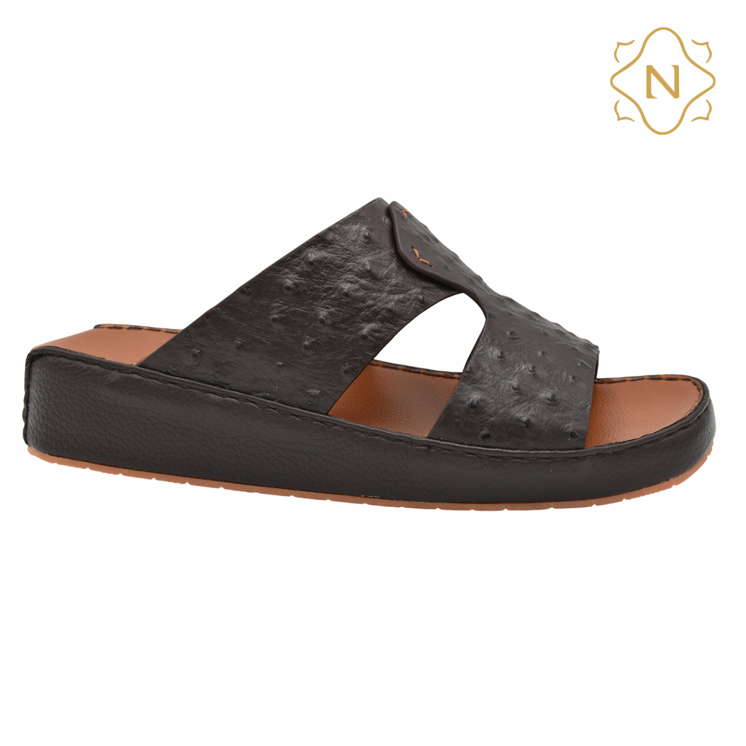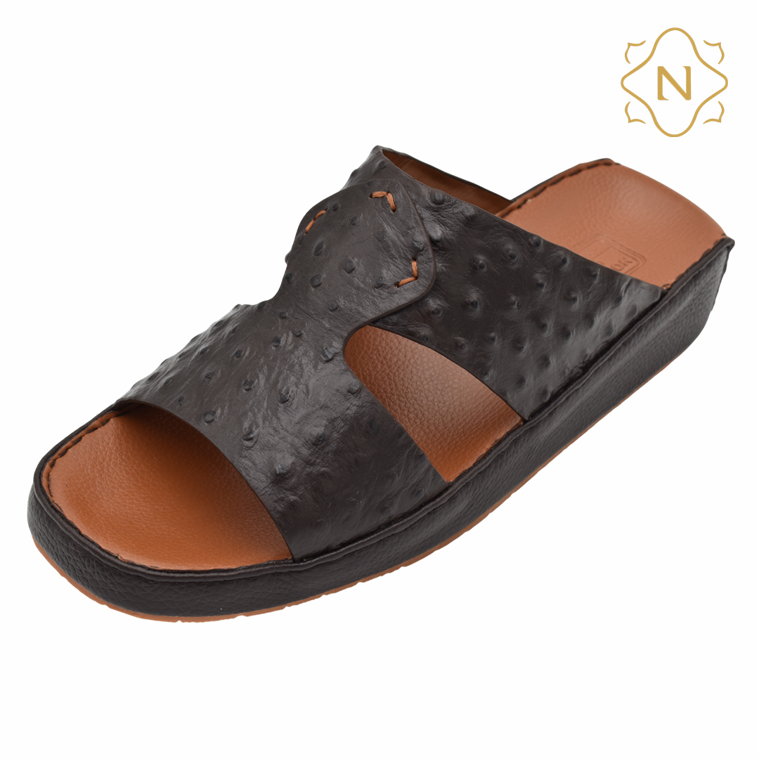 نوروزي جلد نعام أصلي L-156 [OS27] بني نعال رجالي