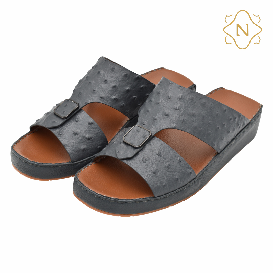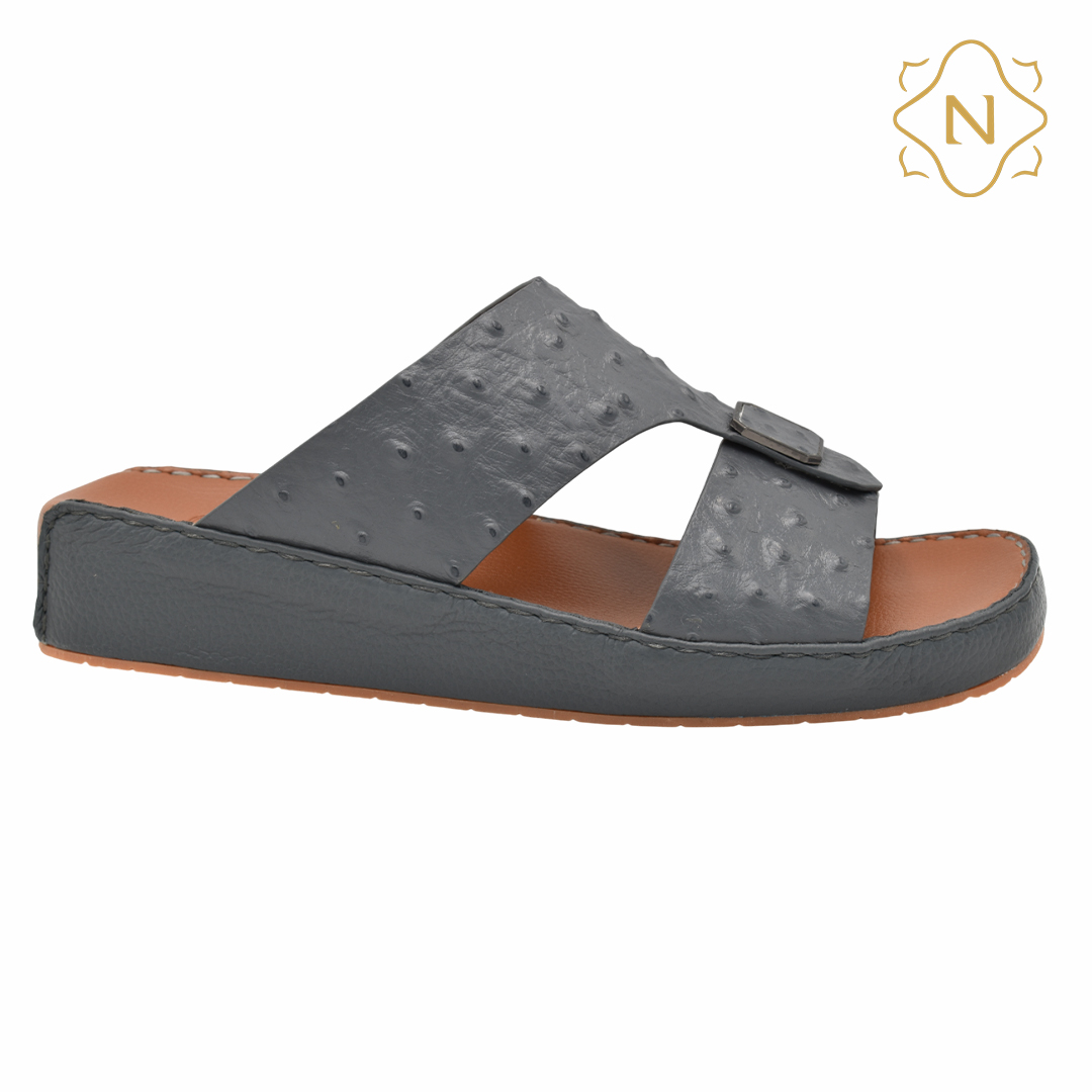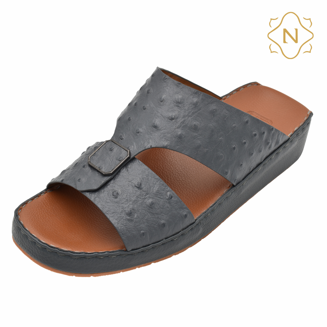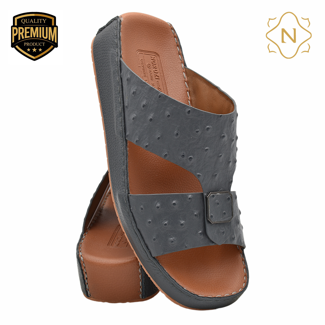 نوروزي جلد نعام أصلي L-151 [OS4] رمادي نعال رجالي