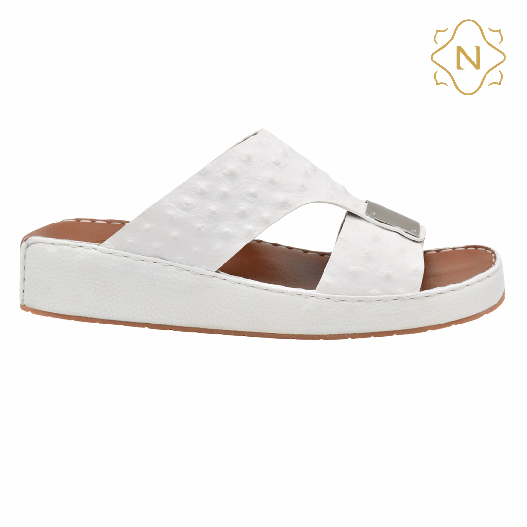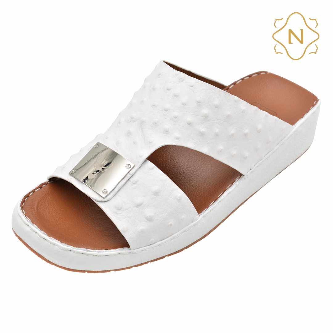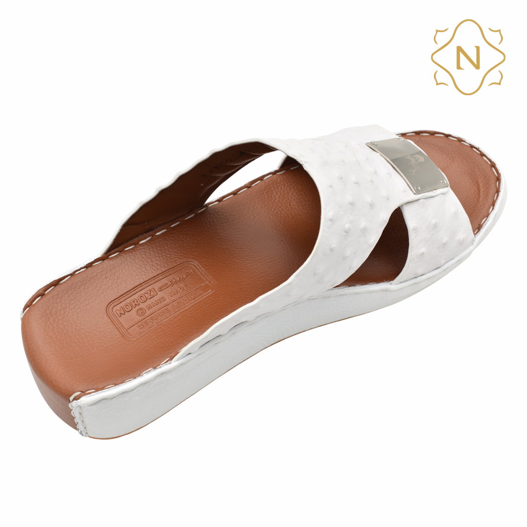 نوروزي جلد نعام أصلي L-152 [OS6] أبيض نعال رجالي
