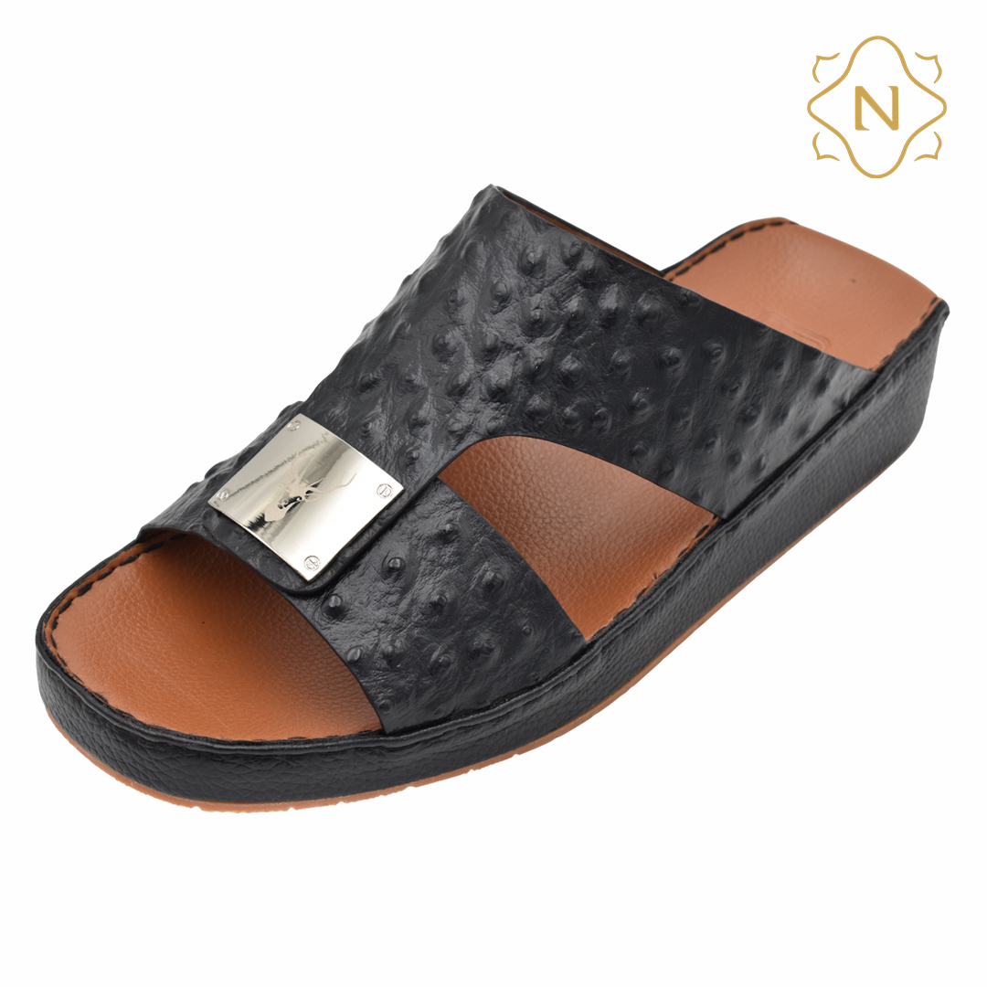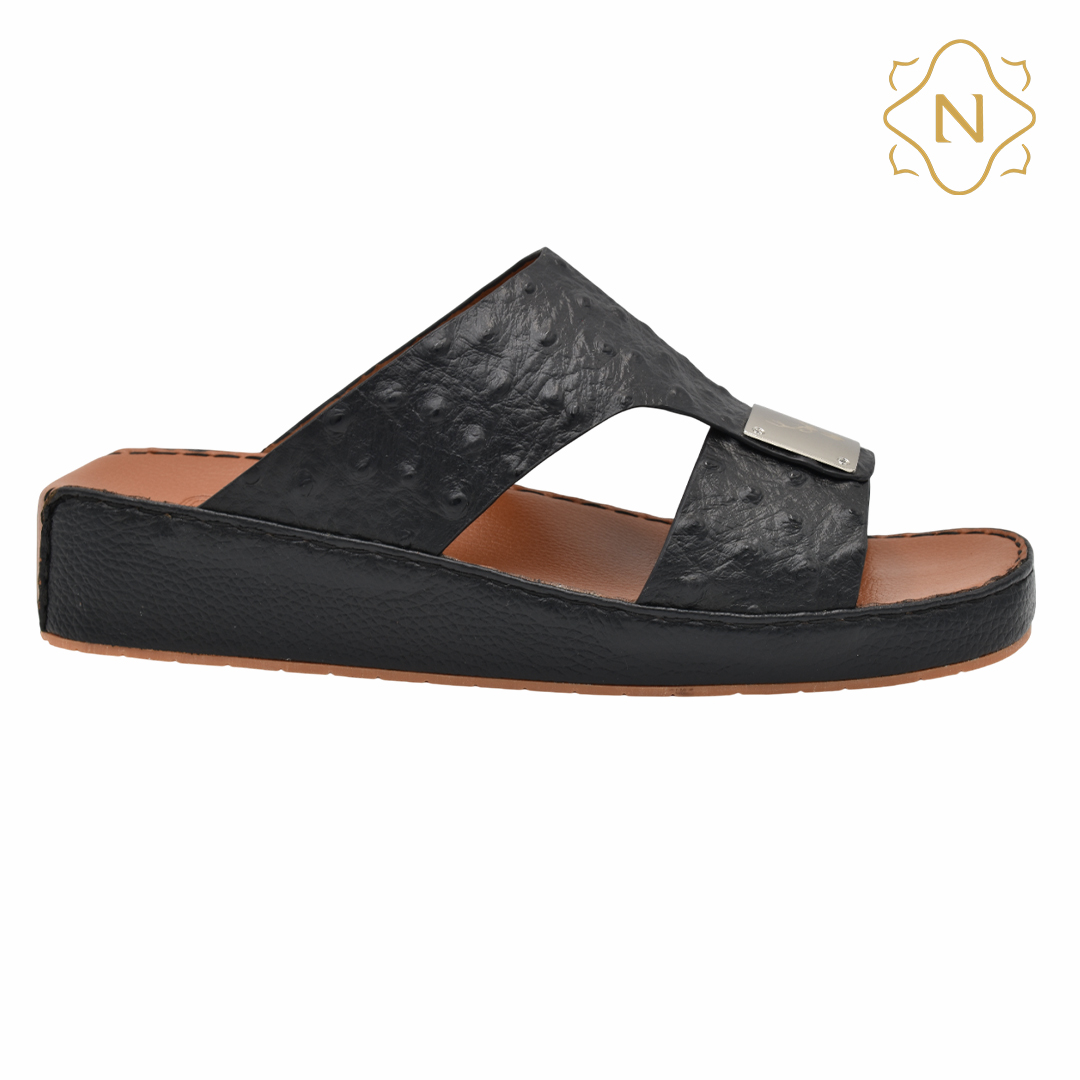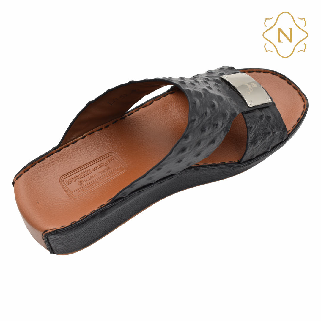 نوروزي جلد نعام أصلي L-152 [OS7] اسود نعال رجالي