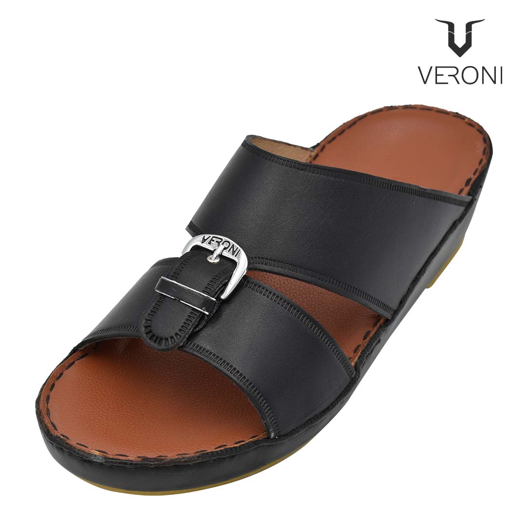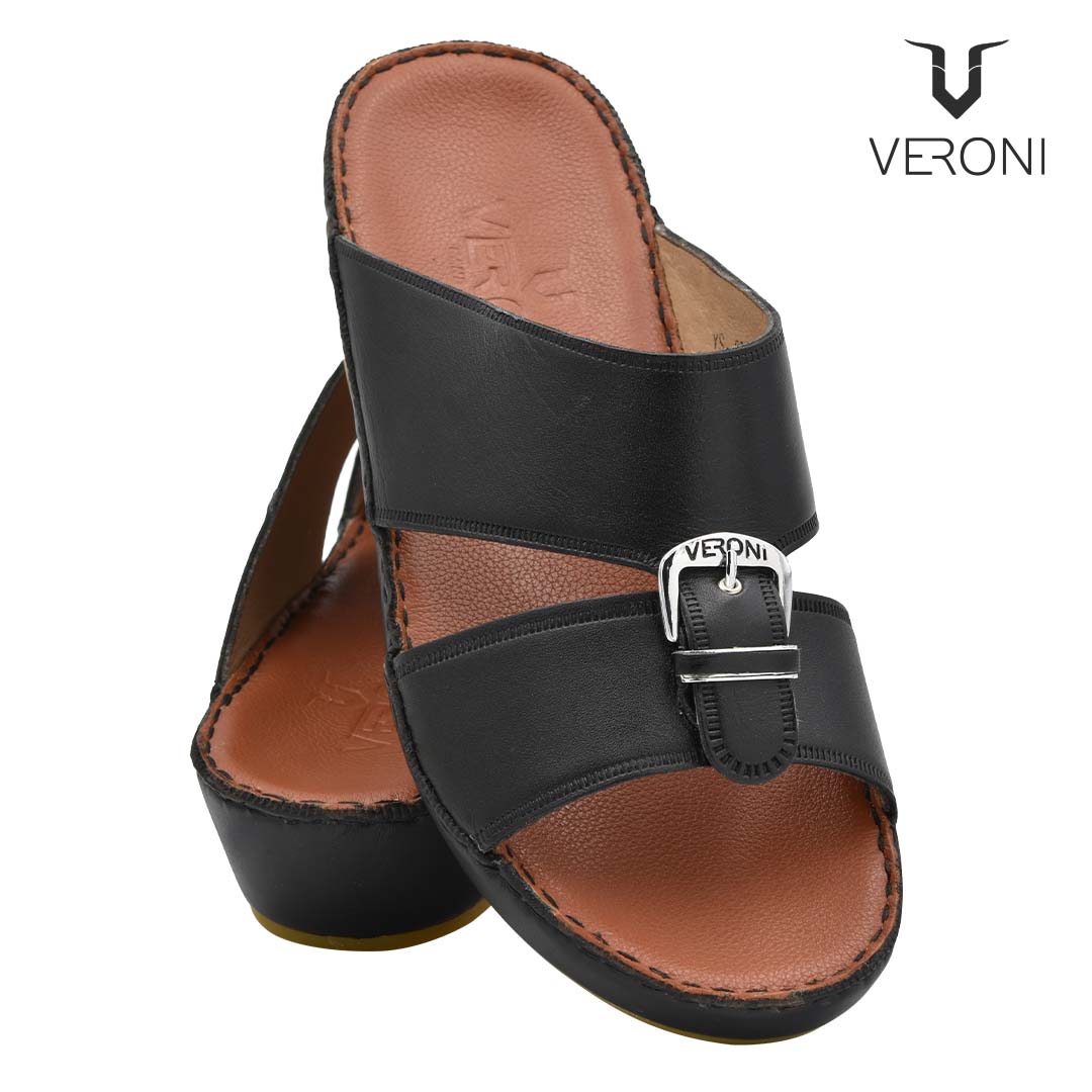 صندل وروني أسود [V144] من جلد كالف بالكامل