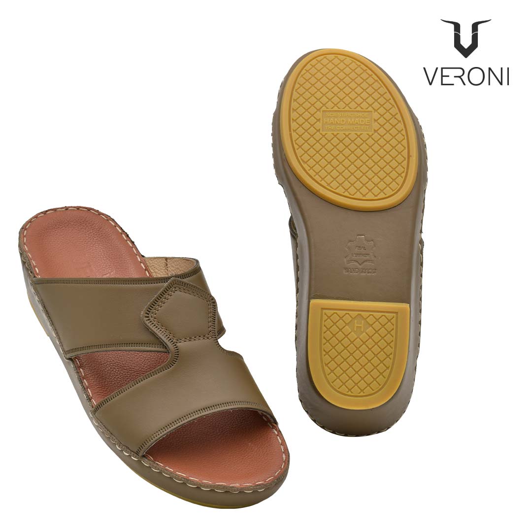 صندل وروني زيتون [V142] من جلد كالف بالكامل